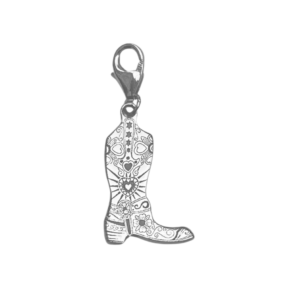 Our charms are teenie tiny versions of our pendants and are made right here in Britain, drawn by hand and cut with a big old laser. They’re made of either solid 925 Sterling Silver, finished and polished by hand. Not all pendants are available as charms, as the detail is too fine to cut (even with a snazzy laser).